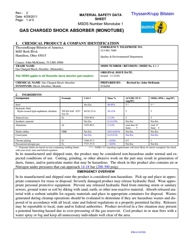 | SDS Sheet Number | USA SDS_Shock_Air Spring_V2_EN.pdf |