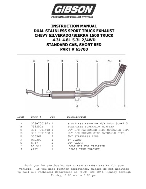 If youre looking to add a little style to your Truck or SUV and want to keep the exhaust from affecting your tow trailer, this Dual Cat back Exhaust System is for you, exiting behind the rear tire for a look that sets your vehicle apart on the street or in the dirt. Hassle free, bolt-on installation with professional looking results. No welding required. Backed by a Lifetime Limited Warranty. Gibson dual sport exhaust offers a powerful authoritative deep exhaust tone with no annoying noise inside the cab. Dyno tested to assure increased horsepower and produce more torque. Average horsepower gains are 10-15 and 15-20lb-ft of increase torque.