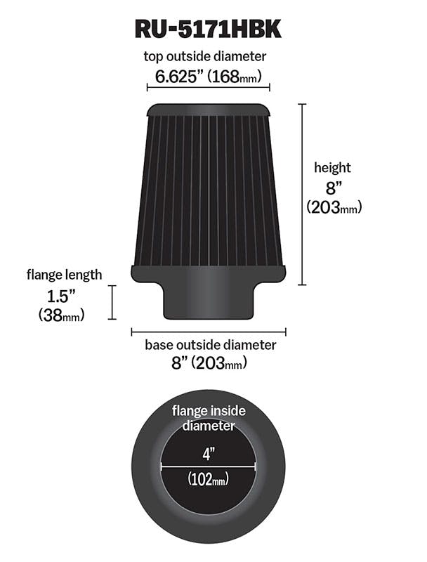 | Product Style | Round Tapered Universal Air Filter |
