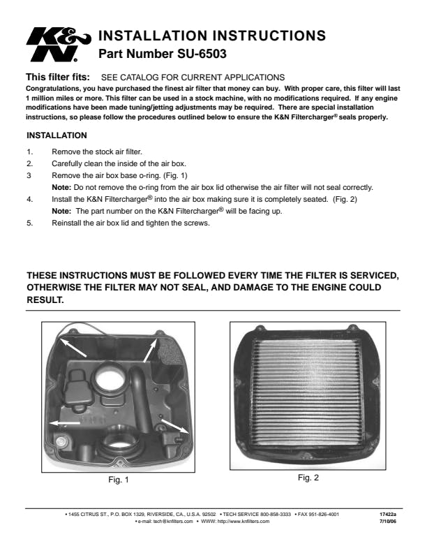 K&N's high-flow air filters are available as a replacement for your stock motorcycle air filter element. They are custom engineered to fit your specific application and are designed to provide low restriction and increased performance, while providing excellent engine protection for your motorcycle.
