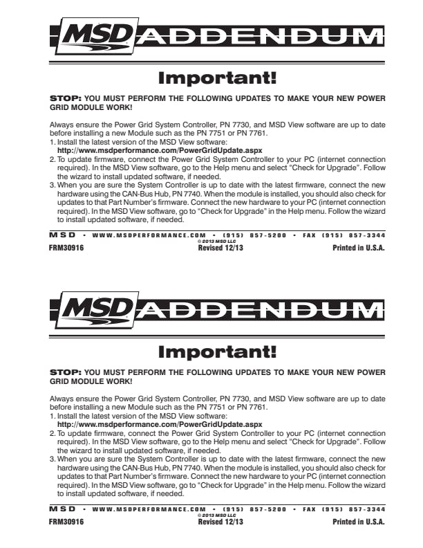 - For use with Power Grid Controller