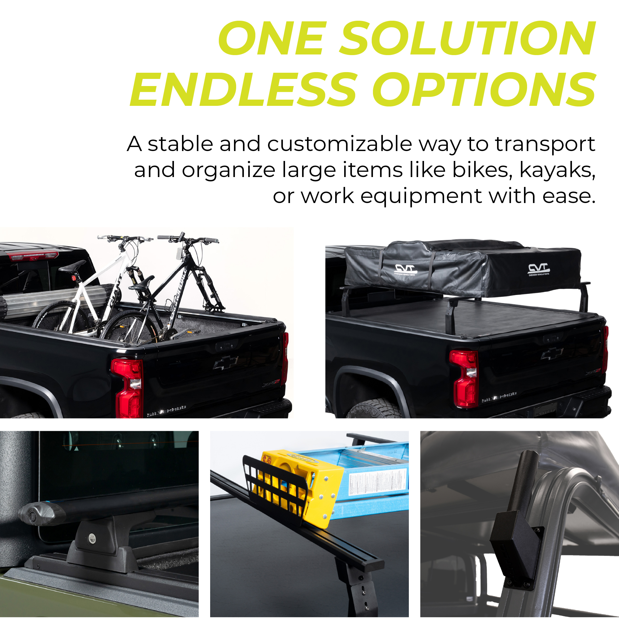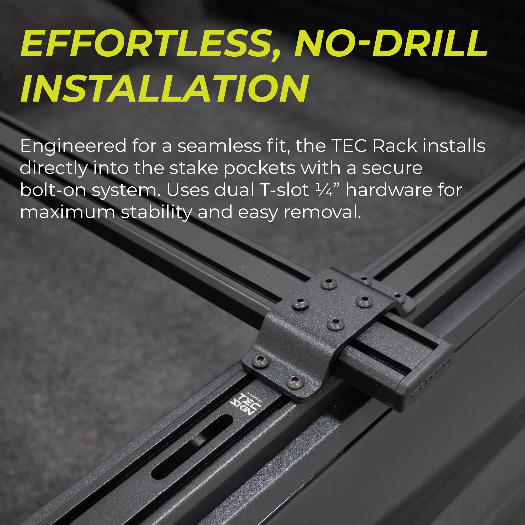 - Enhanced Rigidity: The crossbars work in conjunction with the TEC™ Skins T-Slot Bed Rail Caps uprights to create a more robust framework, thereby improving the rack's overall rigidity.