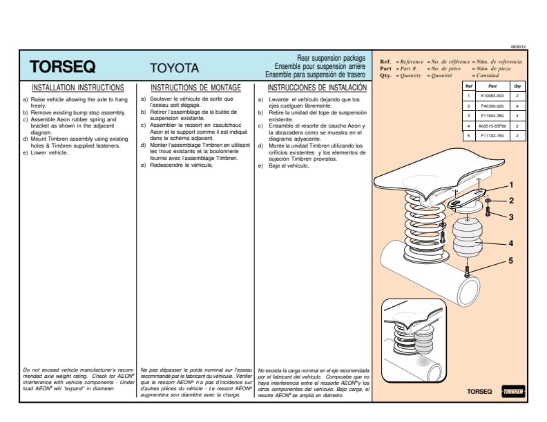 Timbren Suspension Kits (SES Kits) are designed to enhance the suspension of your vehicle. Easiest to use: Rubber cushions absorb road shocks and automatically adjust to uneven loads or road conditions. Easiest to maintain: There are no airlines or fittings to allow leaks. Simply bolt the kit on and you are set for a lifetime of trouble free suspension. Easiest to install: There are no holes to drill, no airlines to route and SES Kits can be installed in a matter of minutes using basic hand tools. The softer ride quality of todays trucks and the mediocre suspensions found on most trailers can cause excessive trailer sway, instability and suspension high performance suspension packages will ensure added safety and peace of mind.